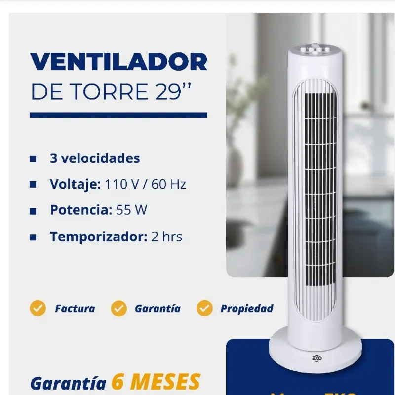 El ventilador de torre de 29" es elegante y compacto, ofrece una excelente circulación de aire y es ideal para espacios reducidos, ya que su diseño vertical lo posibilita.