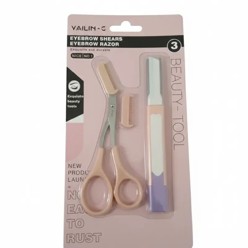 juego de herramientas de belleza para cejas Vailin-C que incluye tijeras y una maquinilla de afeitar. Diseñadas para dar forma y recortar las cejas con precisión. Incluye tijeras con peine protector y perfiladores con navajas plegables. Fabricadas con acero inoxidable para mayor durabilidad. Adecuadas para uso diario y para principiantes.