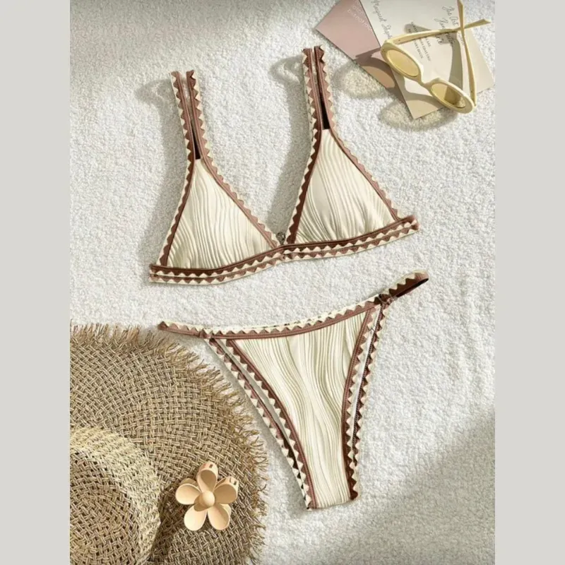 Bikini beige con bordes carmelitas