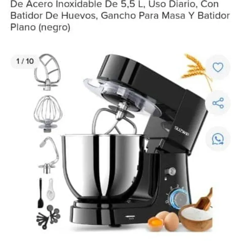 Marca: Suzwip, 1500w,Profesional, Recipiente de acero inoxidable de 5.5lt, 6 velocidades