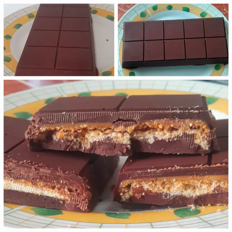 Peter de chocolate 21 cm de largo, 9 cm de ancho 2 cm de alto, relleno con dulce leche condensada (fanguito), mani y galleticas dulce