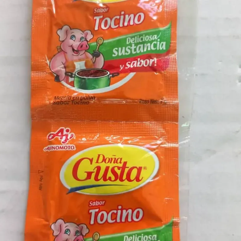 Doña Gusta Caldo Sabor Tocino Doña Gusta Caldo Sabor Tocino 🥓 Concentrado en polvo para un delicioso sabor a tocino en tus platos. 🐷 Añade sustancia y un toque ahumado a menestras, frijoles y guisos. ¡Sabor intenso al instante! 🌟