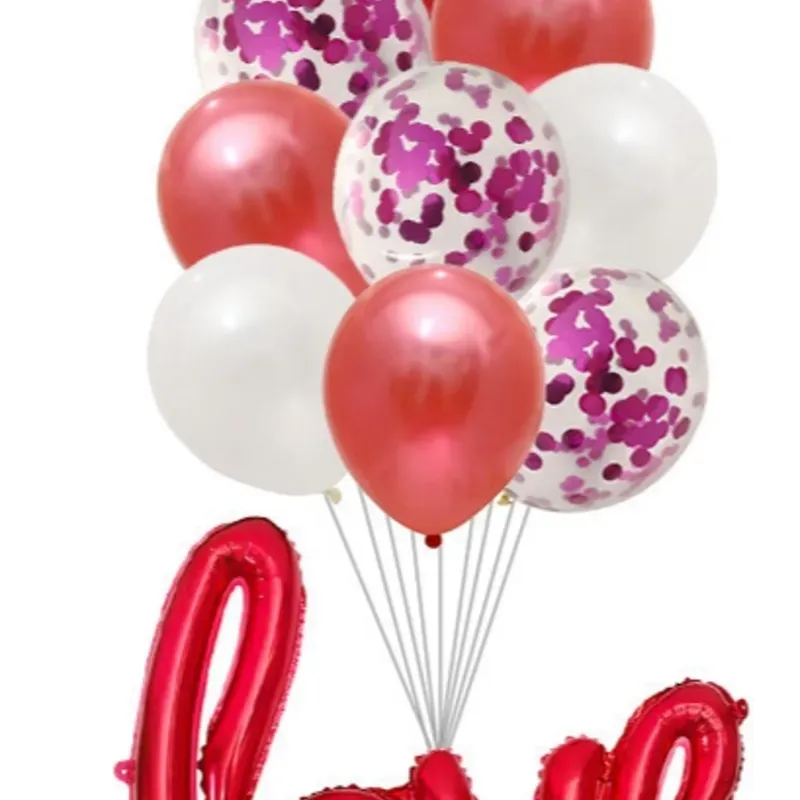 Incluye 1 globo de corazón (18") 8 globos de látex 1 globo de letrero Love