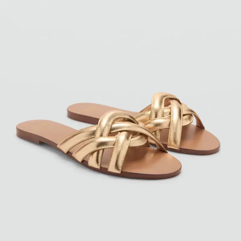 Sandalia piel tiras doradas