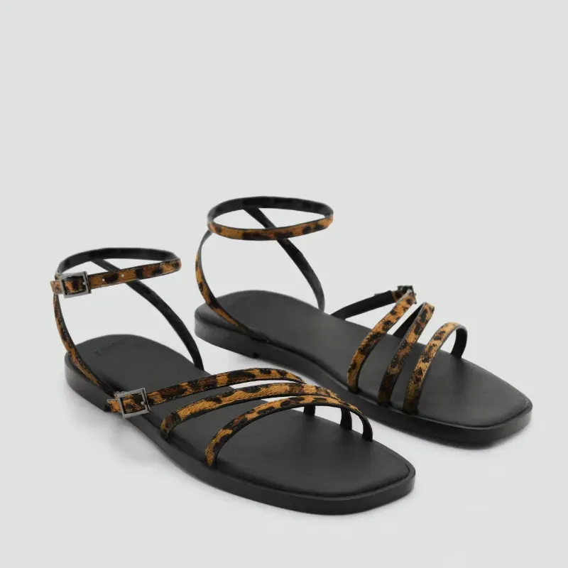 Sandalias tiras animal print piel