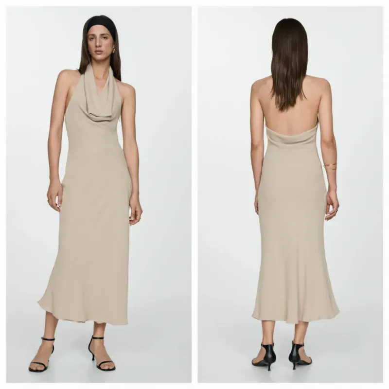 Vestido halter escote drapeado