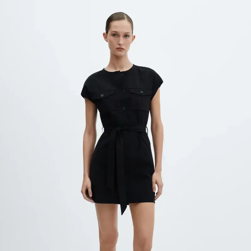 Vestido lazo detalle bolsillo