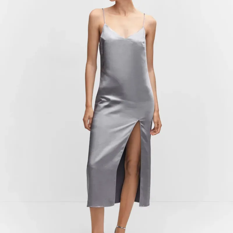 Vestido satinado gris