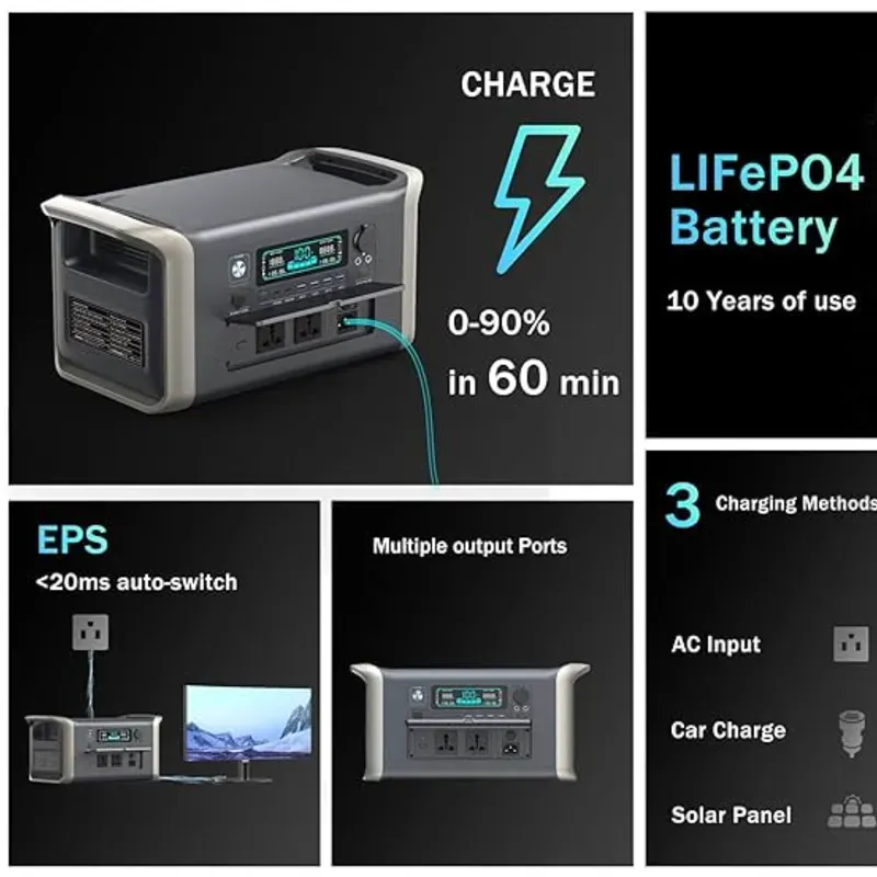 Múltiples Salidas: Listo para cargar laptops, móviles y alimentar pequeños electrodomésticos simultáneamente.