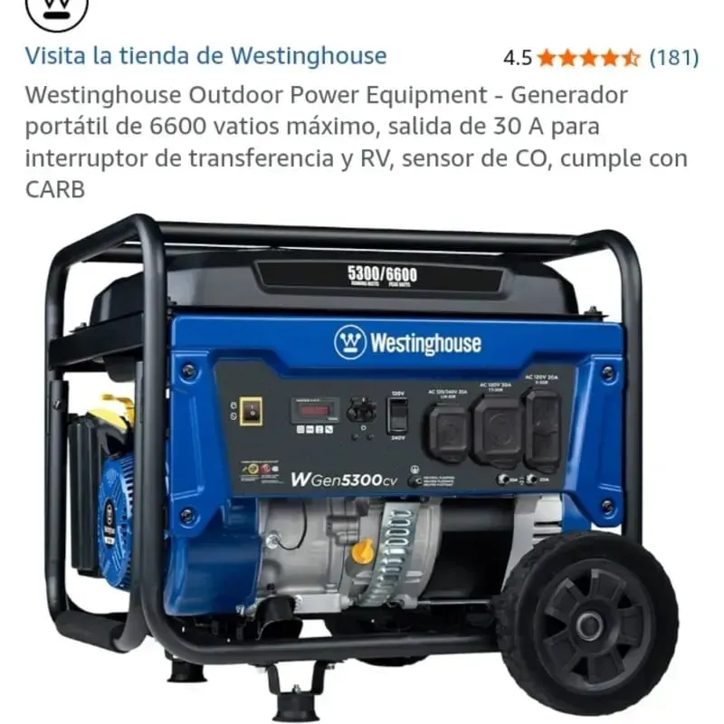 Westinghouse — Generador portátil 6600W (gasolina solamente)