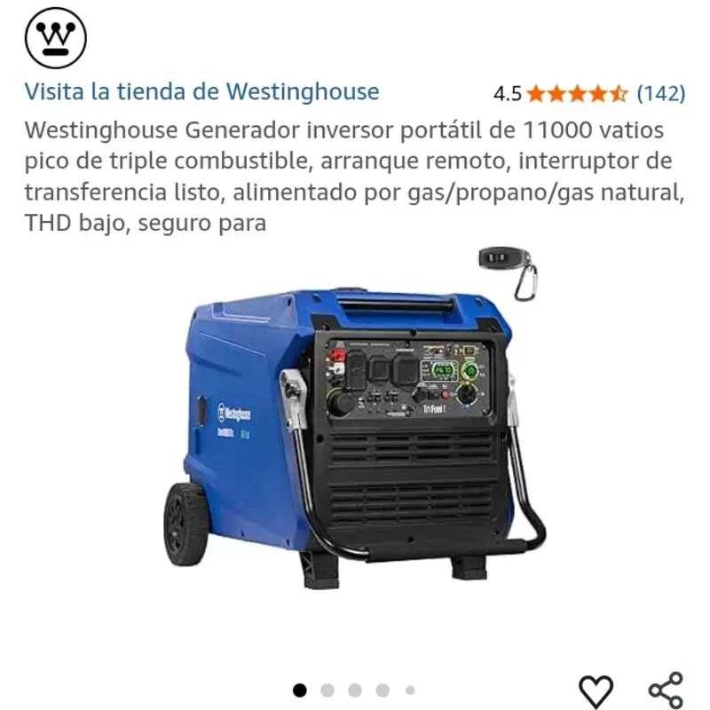Westinghouse 11000W Tri-Fuel Inverter (gasolina, gas propano y gas natural)