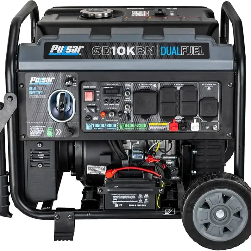 🔌 Planta Eléctrica Pulsar GD10KBN – Dual Fuel (Inverter) ⚡ Potencia máxima: Gasolina: 10,500 W pico / 8,000 W continuos Propano (GLP): 9,400 W pico / 7,200 W continuos 🔌 Salidas eléctricas: 120V / 240V Tomas 30A y 50A Puerto DC 12V y USB 🔑 Arranque: Eléctrico (con batería incluida) ⏱️ Autonomía eficiente: .Hasta 9–10 horas según carga y combustible .Capacidad del tanque 8 galones Factura y garantía 15 días Mensajería por costo adicional