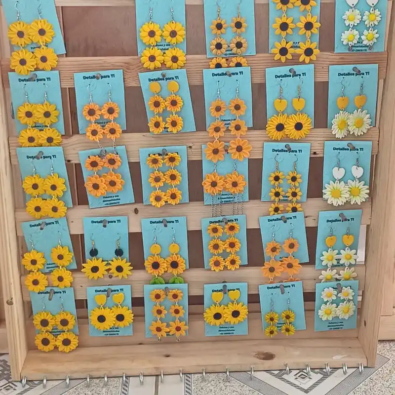 Aretes pequeños en porcelana fria-200cup Rositas Margaritas Cactus Girasoles Mas de 20 pares $ 200 cup