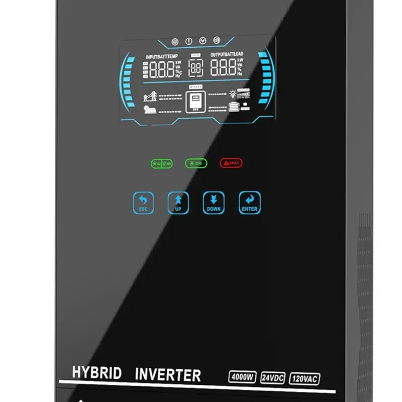SUMRY - Inversor solar híbrido, 4000 W, 24 V CC a 120 V CA, convertidor de corriente de onda sinusoidal pura, cubierta superior de vidrio con pantalla LCD, controlador de carga MPPT de 140 A
