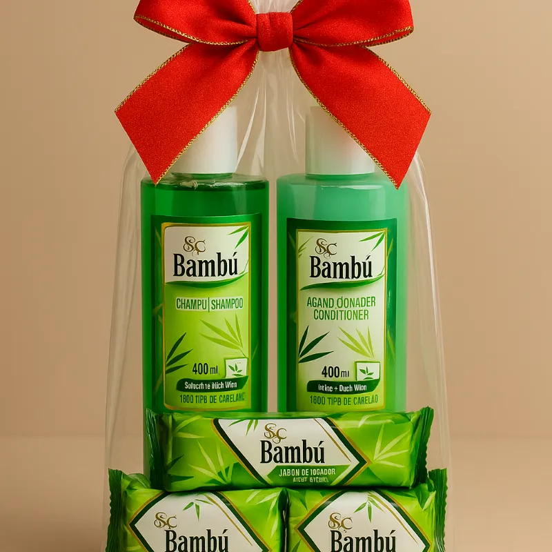 • Champú Bambú 🌿 • Acondicionador Bambú 💚 • 3 Jabón de tocador de Bambú 🧼