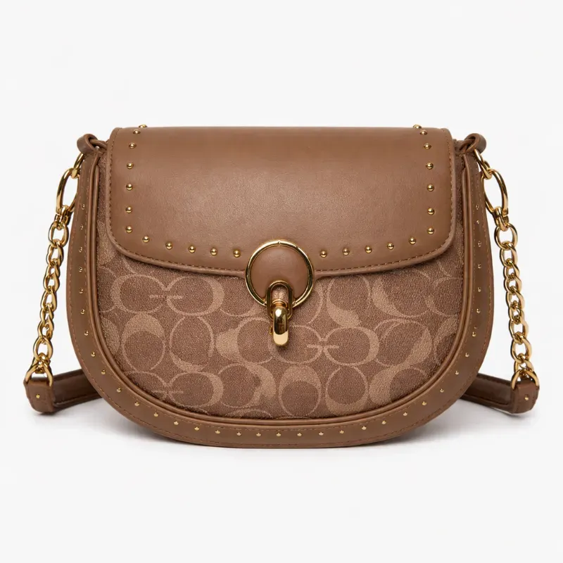 Bolso elegante en tono camel con detalles dorados y diseño sofisticado. Perfecto para elevar cualquier outfit con un estilo moderno y versátil. Ideal para uso diario o salidas especiales.