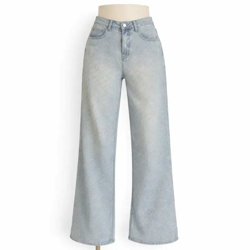 Jean de corte recto con efecto lavado en tono claro y diseño estampado sutil. Ajuste cómodo que estiliza la figura y combina fácilmente con cualquier outfit. Ideal para uso diario con un look moderno y diferente.