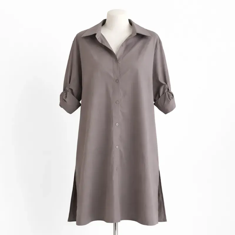 Vestido Camisero Oversize Gris – Elegante, Cómodo y Versátil
