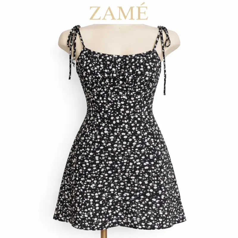 Vestido corto en color negro con estampado floral blanco, tirantes ajustables y diseño ligero. Corte suelto que estiliza y aporta comodidad. Ideal para uso diario, salidas o combinar fácilmente con cualquier look.