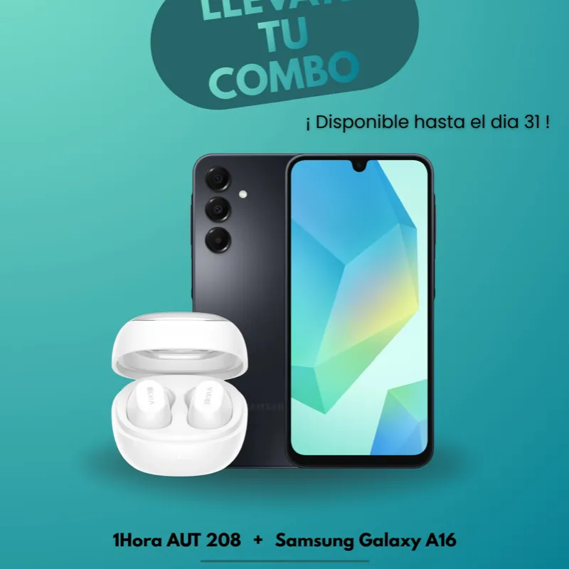 En este combo traemos la magia del Samsung Galaxy A16 combinado con la calidad de sonido de los AUT208 de 1Hora Una combinación que sin dudas te dejará una muy buena impresión.